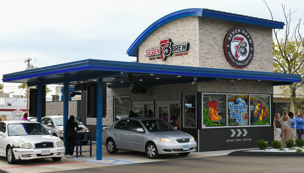 7 Brew Drive Thru Coffee’s innovative service model eliminates the traditional intercom system, replacing it with a double-lane drive-thru for efficient service. Team members personally take and deliver orders directly to customers’ vehicles, ensuring a personalized experience.