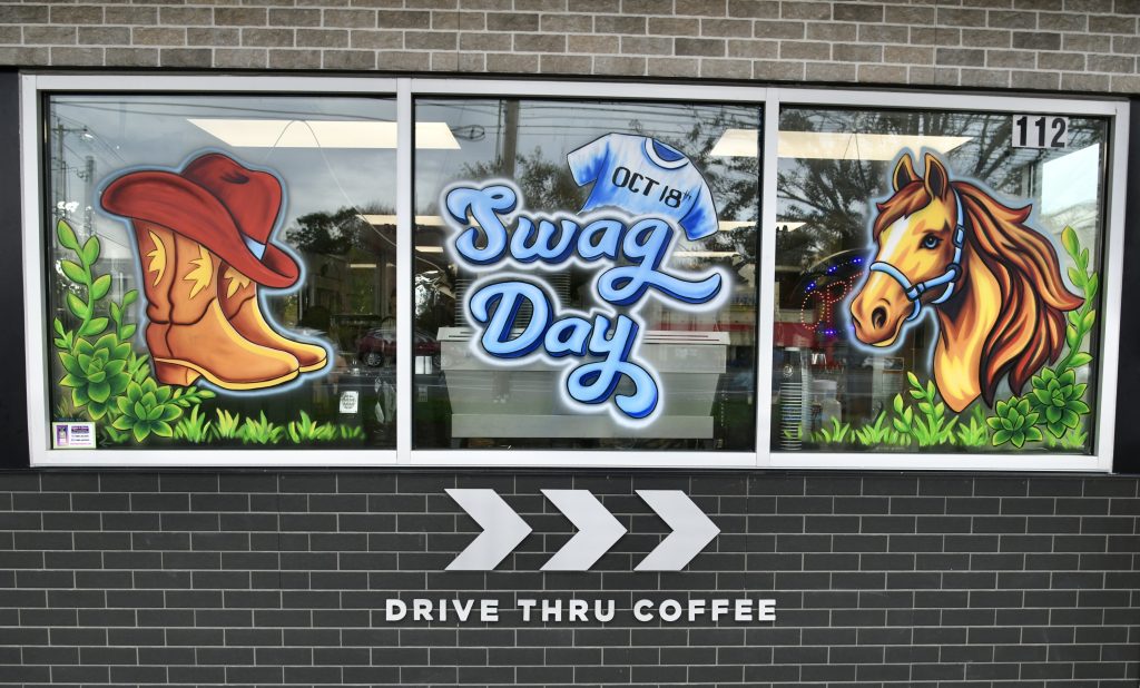 To celebrate grand opening week, the Orange location is giving away one free small drink per present customer during “Community Hours” from 8 to 9:00 a.m., noon to 1:00 p.m., and 5:00 to 6:00 p.m. through this Friday. On Saturday, October 18th, the celebration culminates with “Swag Day;” every large drink purchase comes with a free 7 Brew t-shirt (while supplies last).